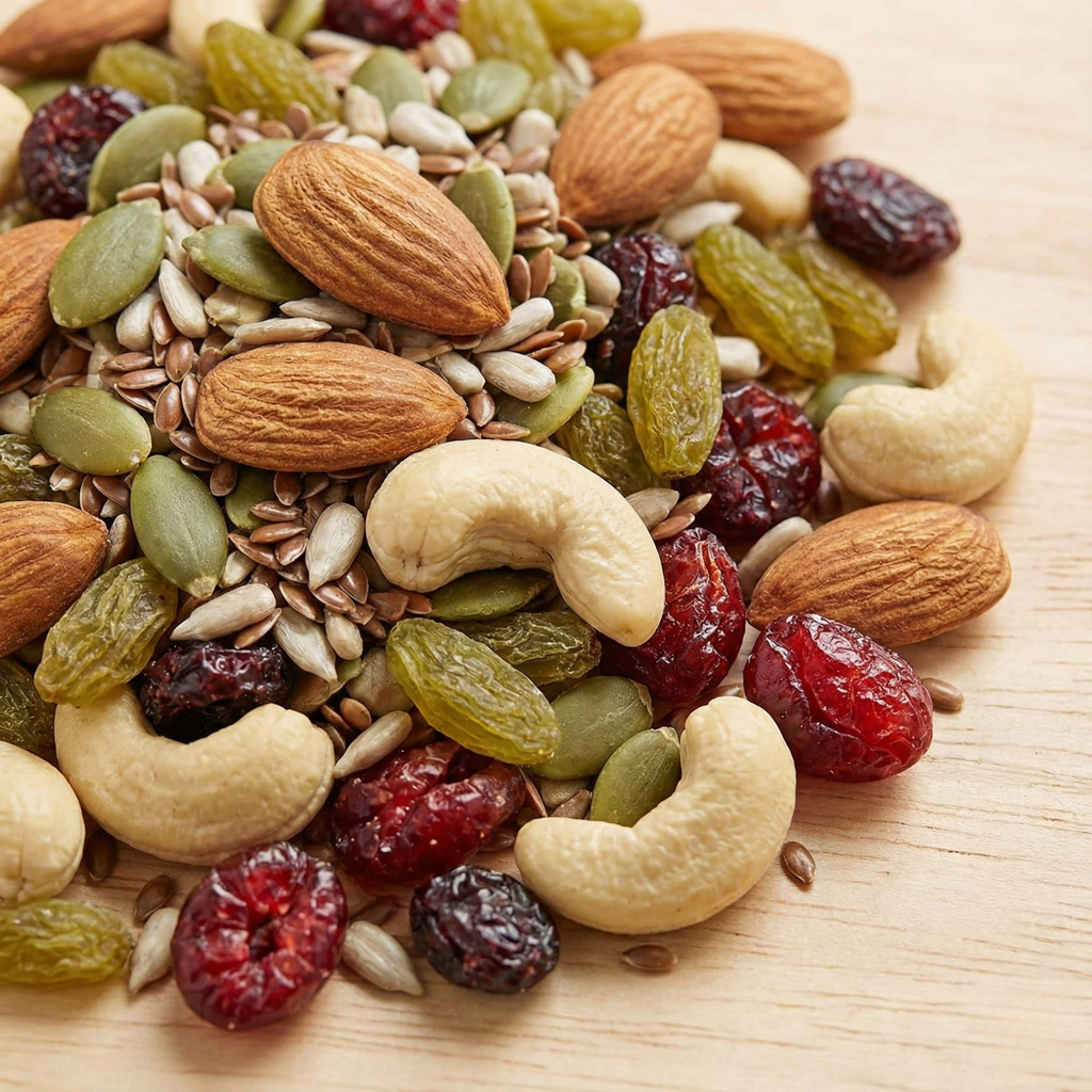 Sweet & Savory: A touch of Green Raisins and Dried Berry Mix adds a natural sweetness to balance the earthy crunch of the nuts.